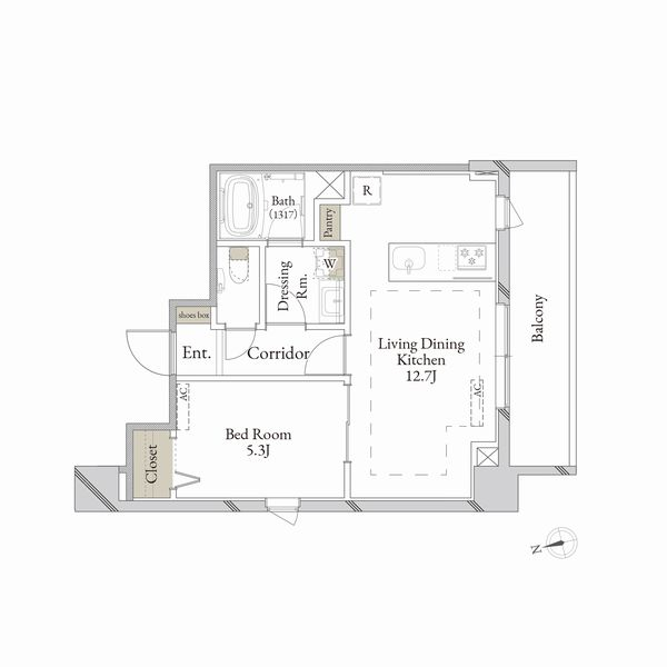 | 間取り | 1LDK | 間取り詳細 | LDK12.7 洋室5.3 | 専有面積 | 44.74㎡ |