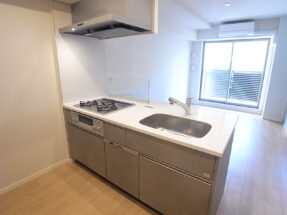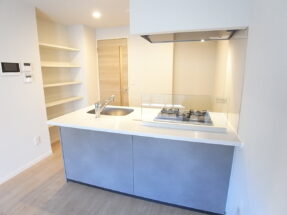 キッチンはオープンタイプのカウンター式。南に窓があって明るいキッチンです。