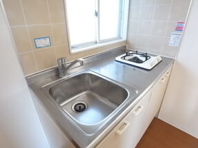 キッチンに窓があるため陽が入りやすく、明るく、1口コンロ設置済み。
