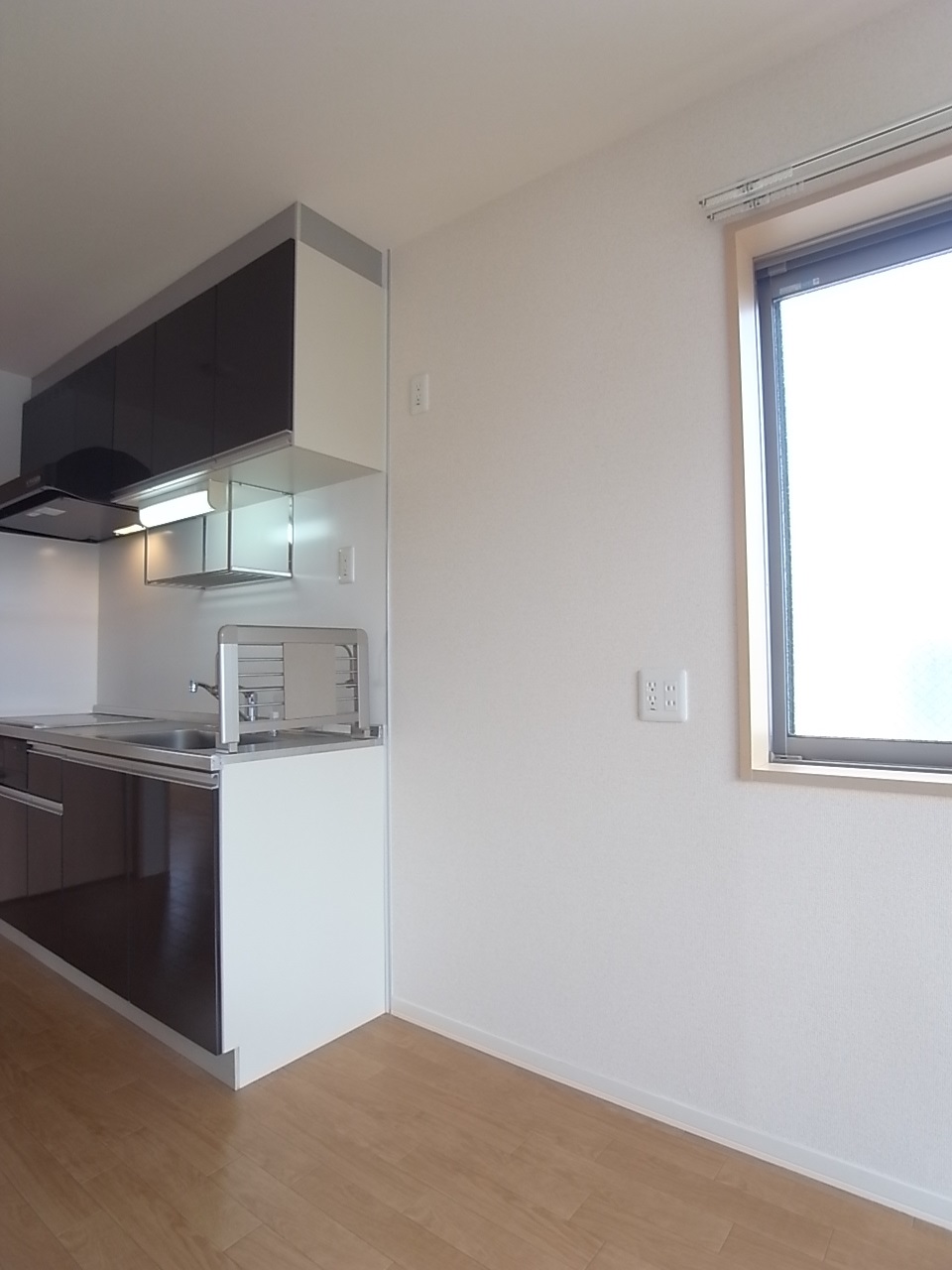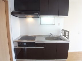 システムキッチンはIHクッキングヒーター3口コンロ。