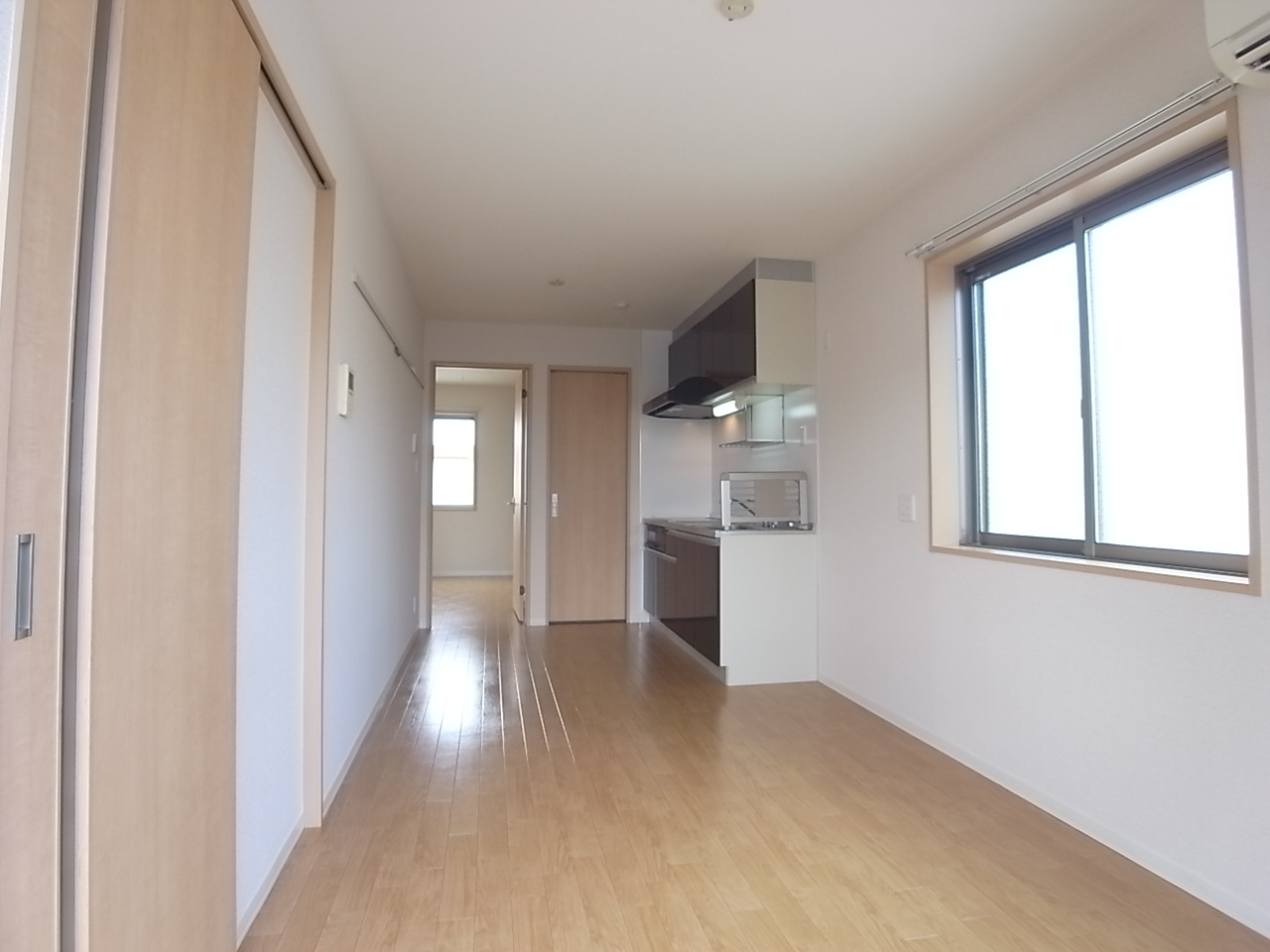 洋室は6.4帖。明るいお部屋です。大容量ウォークインクローゼット付きで、お部屋がスッキリと片付きます。