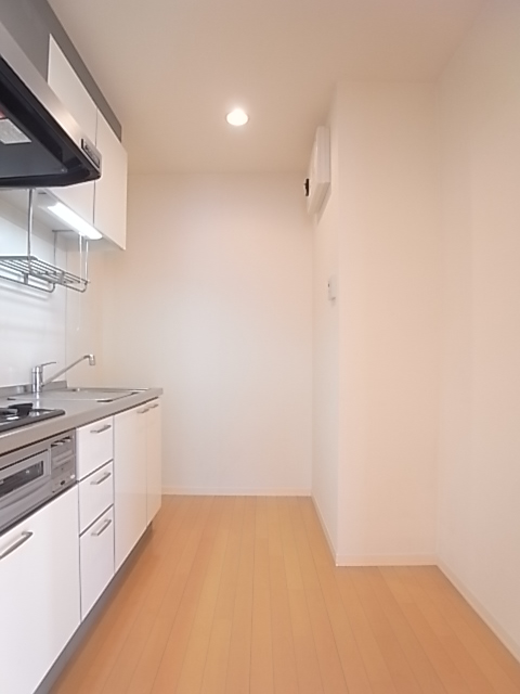 独立型のキッチンはガス3口コンログリル付き。収納も多く機能的で、2ヶ所の窓から明るい光が差し込みます。
